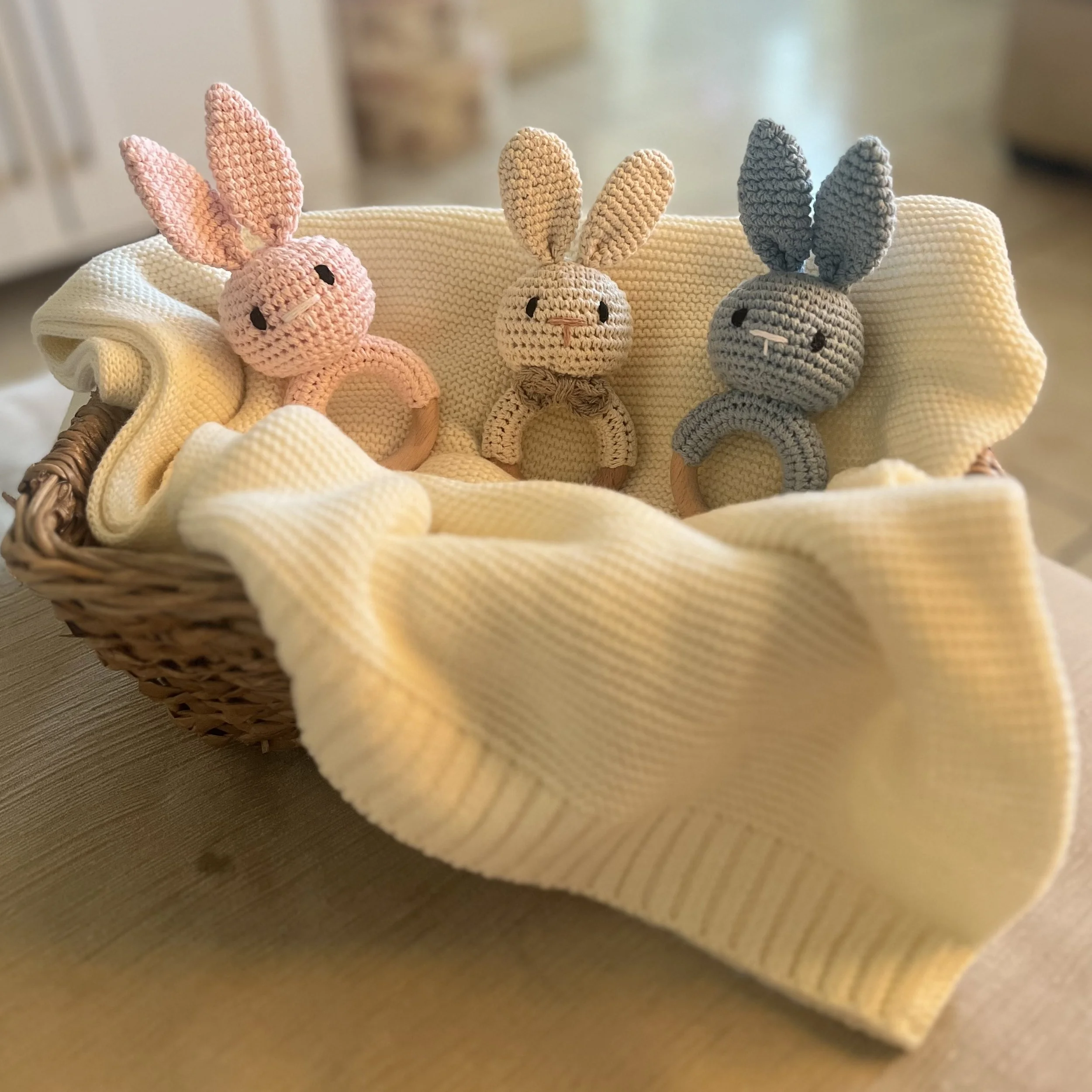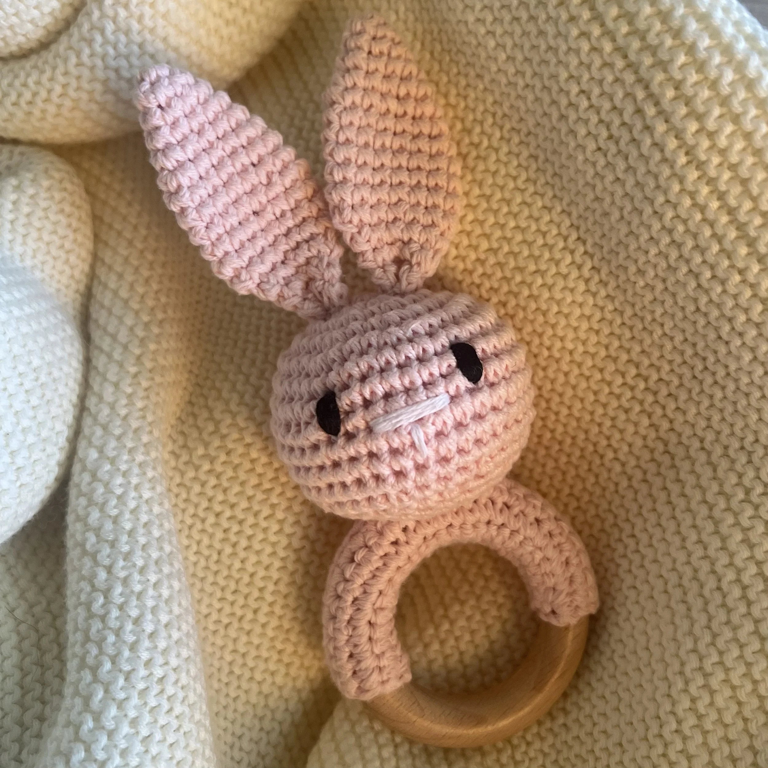 A soft and squishy little friend for tiny hands to hold. Handmade feel with gentle textures and soft rattling sound — perfect for soothing play.